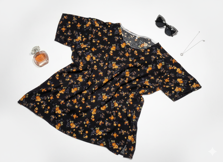 رنگ: مشکی با طرح گلهای نارنجی و زرد